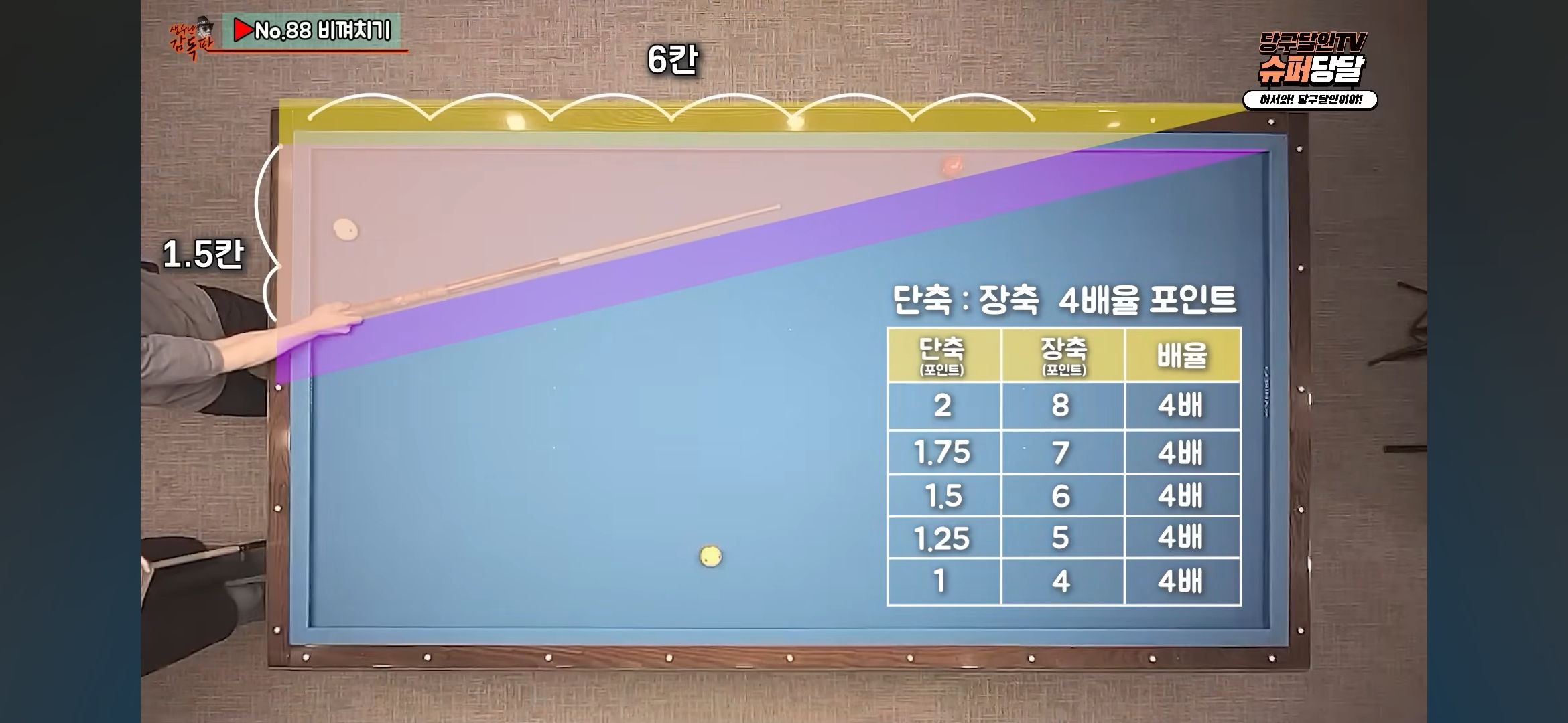 - 목적구 위치에 따라 당점(무팁/원팁/투팁)을 사전에 결정